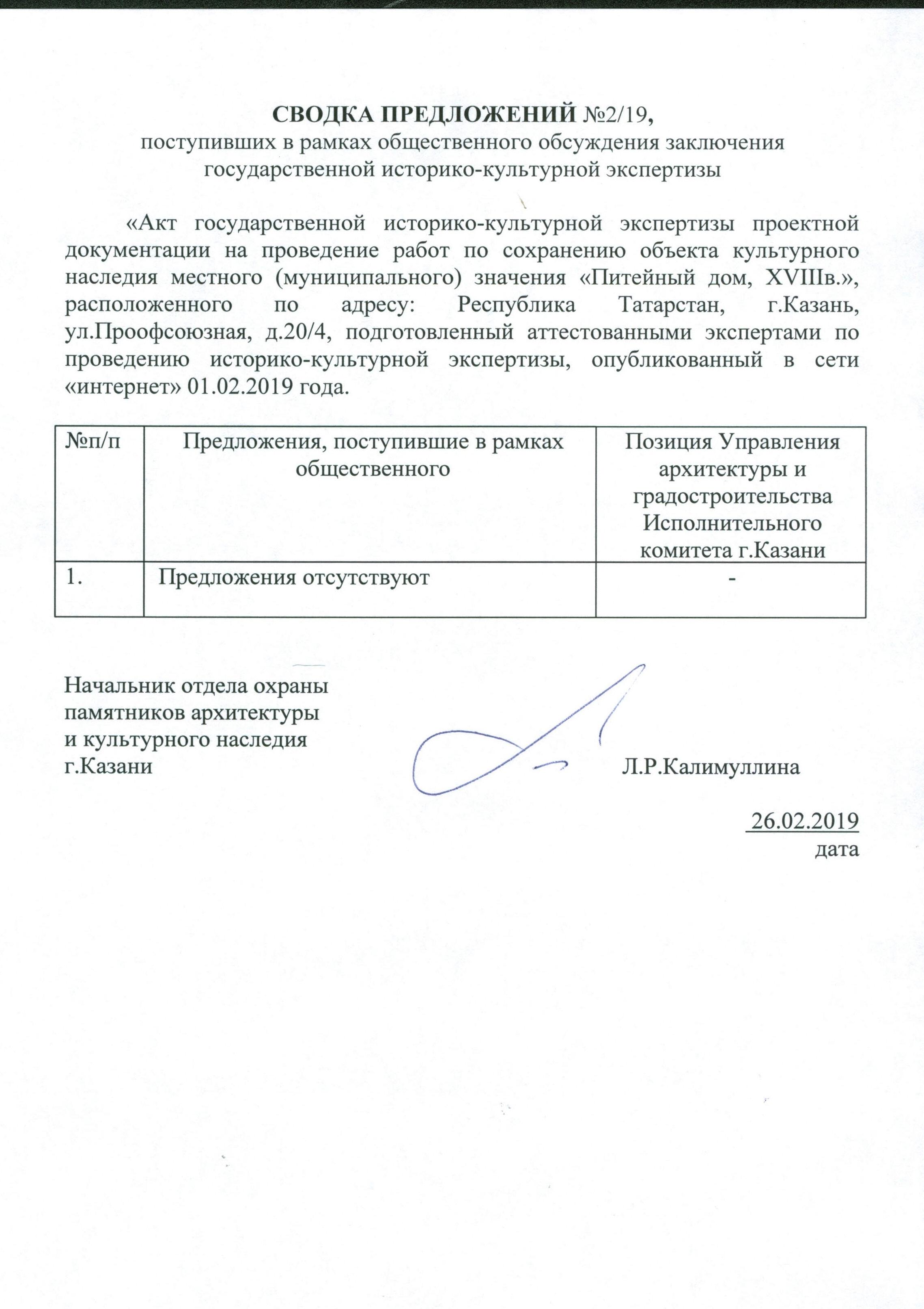 Согласно п.30 "Положения о государственной историко-культурной экспертизе" (Постановление Правительства РФ от 15.07.2009 № 569) УАиГ рассматривает предложения, поступившие в течение 15 рабочих дней со дня размещения заключения экспертизы на сайте в сети "Интернет" в электронной (по адресу: Ohrana.Pamyatnikov@tatar.ru ) или письменной форме (по адресу: 420012, г.Кзаань, ул.Груздева, д.5).